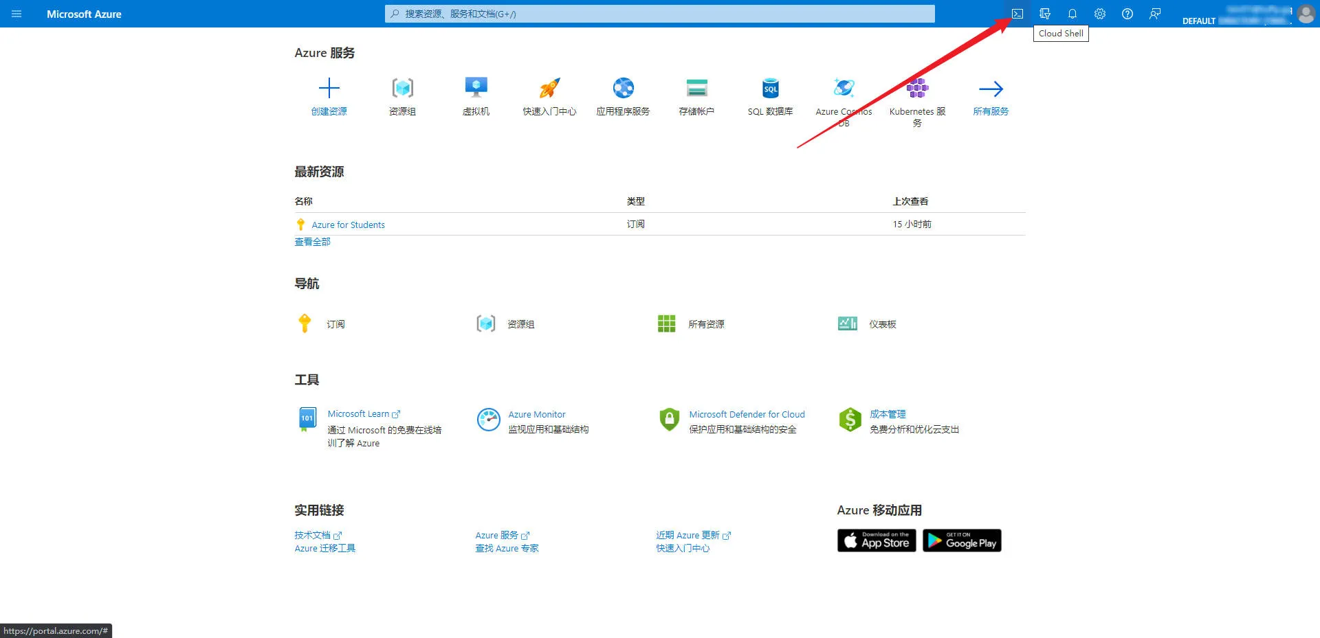 登录Azure后台,选择右上角的Cloud Shell